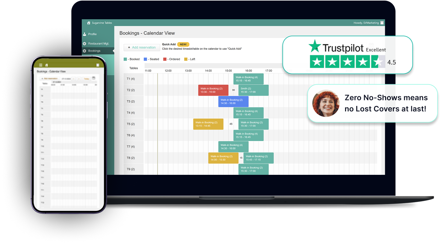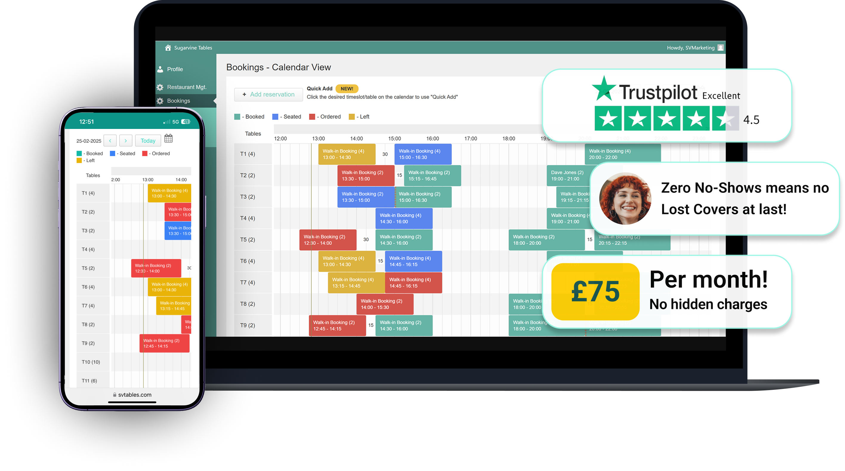Designed specifically for restaurants, pubs, cafes and bars, Sugarvine Tables provides a powerful yet simple online reservation system with a transparent flat monthly fee. Unlimited covers, reserve with Google included as standard, no commission, no hidden extras. They handle the setup, support you directly, and focus on helping venues increase bookings while reducing admin and unnecessary costs.
